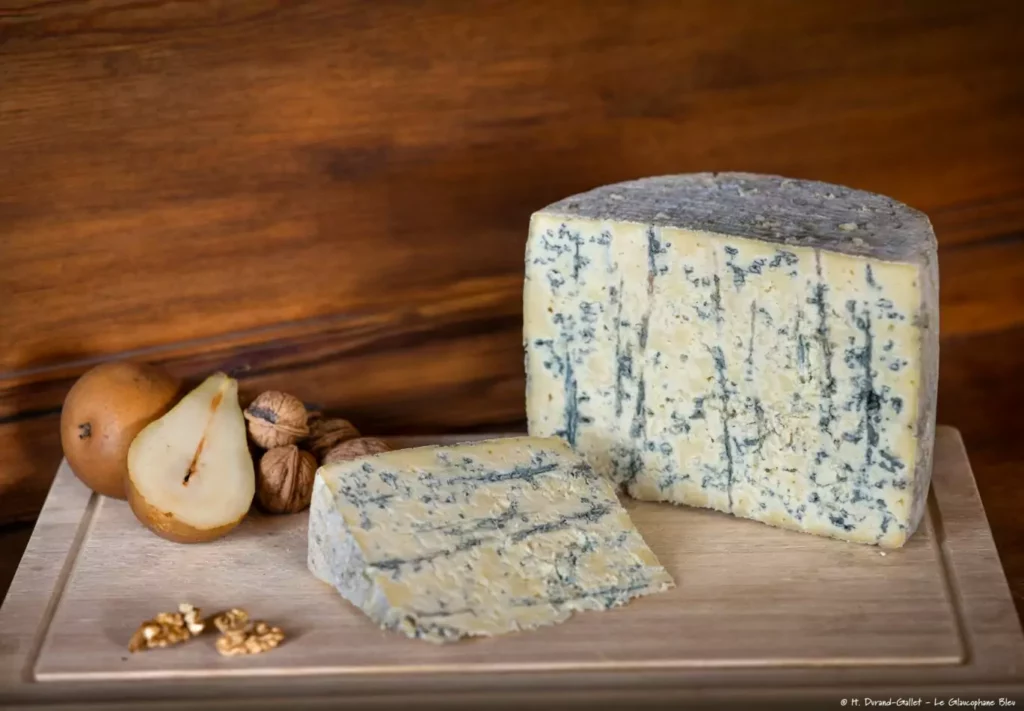 Pâte persillée affinée 2 à 3 mois. Fromage entier d’environ 3kg de forme cylindrique avec un croûtage sec.