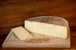 Goût fruité et très puissant ; tomme en format 2kg ou 8kg de type raclette au niveau du croutage ; affinage minimum 3 mois.
